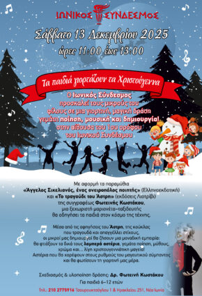 Ο Ιωνικός Σύνδεσμος προσκαλεί τους μικρούς του φίλους σε μια γιορτινή, μαγική δράση γεμάτη ποίηση, μουσική και δημιουργία! Με αφορμή
