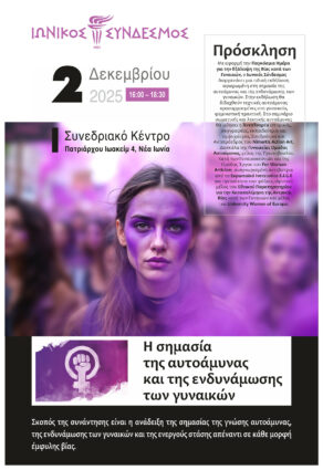 Με αφορμή την Παγκόσμια Ημέρα για την Εξάλειψη της Βίας κατά των Γυναικών, ο Ιωνικός Σύνδεσμος διοργανώνει μια ειδική εκδήλωση